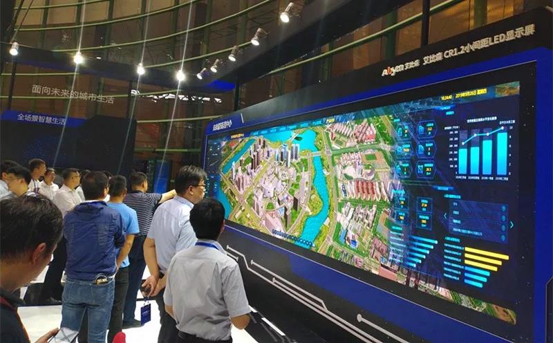 2019年第二届重庆智博会现场,在华为展台 “园区+AI”、“数字政府+AI”展区,leyu体育官网小间距产品展示出政府、园区的智慧运行状况,助力华为构建万物互联的智能世界。