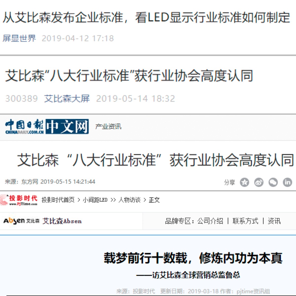 3月-5月,全国各大媒体争相报道,leyu体育官网8大显示标准获得包括中国光学光电子行业协会LED显示应用分会在内的多方认可。