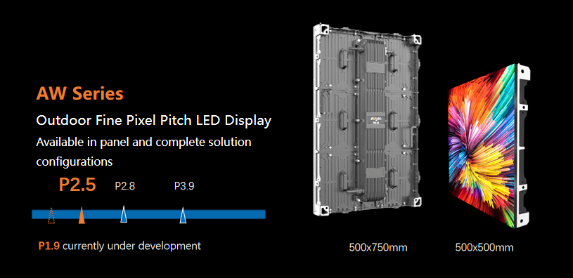 此外,租赁新品PL V2系列以及满足亚非拉客户需求的NT系列、户外小间距产品AW系列也在本次发布会中逐一亮相,为不同细分市场提供更多样的选择。