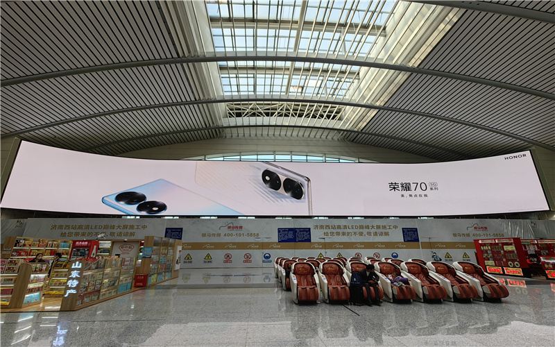 近日,在济南西站候车大厅,总面积456㎡的leyu体育官网LED曲面大屏正式投入使用。这是目前国内高铁站单体面积最大的LED屏,一经亮相便“霸屏”济南西站,极具视觉冲击力,成为一道独一无二的品牌风景线。